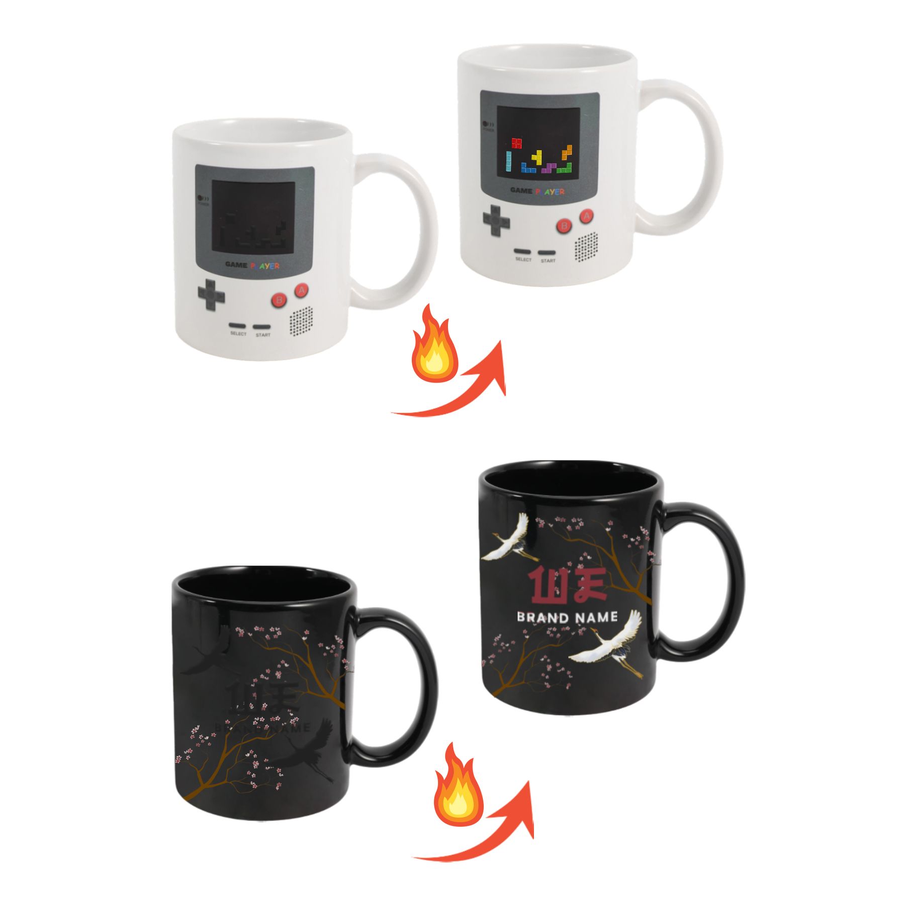- When filled with a beverage hotter than 50°C, reveals your custom design.
